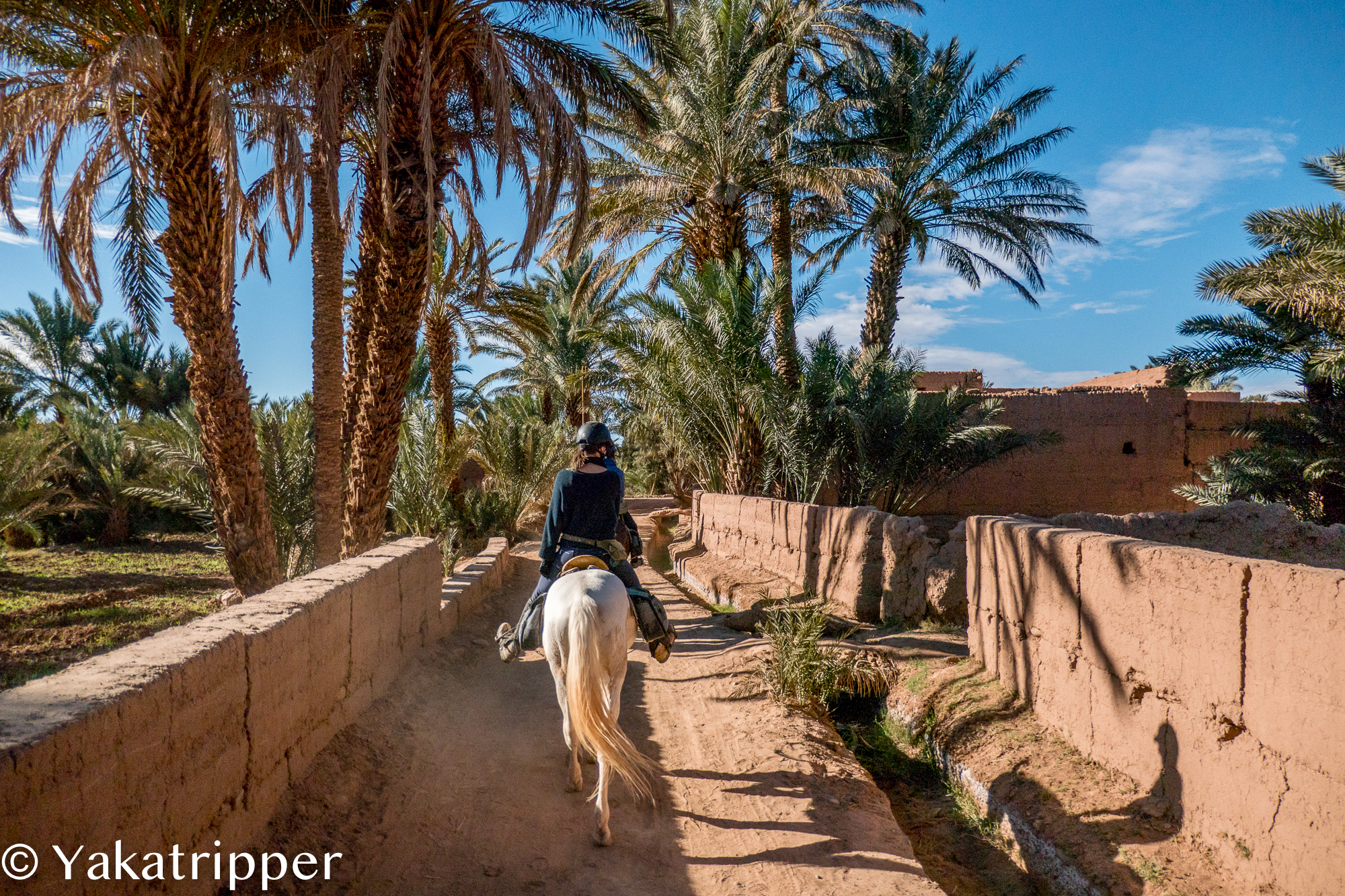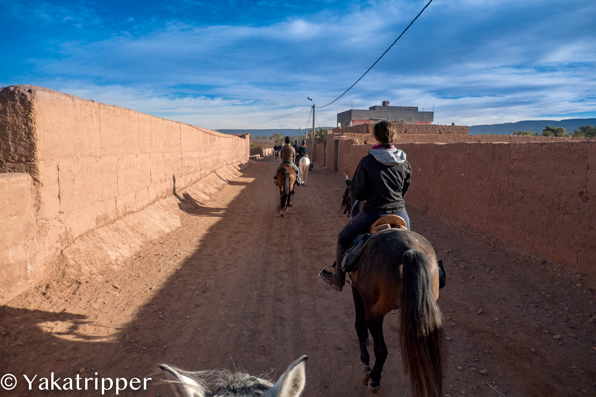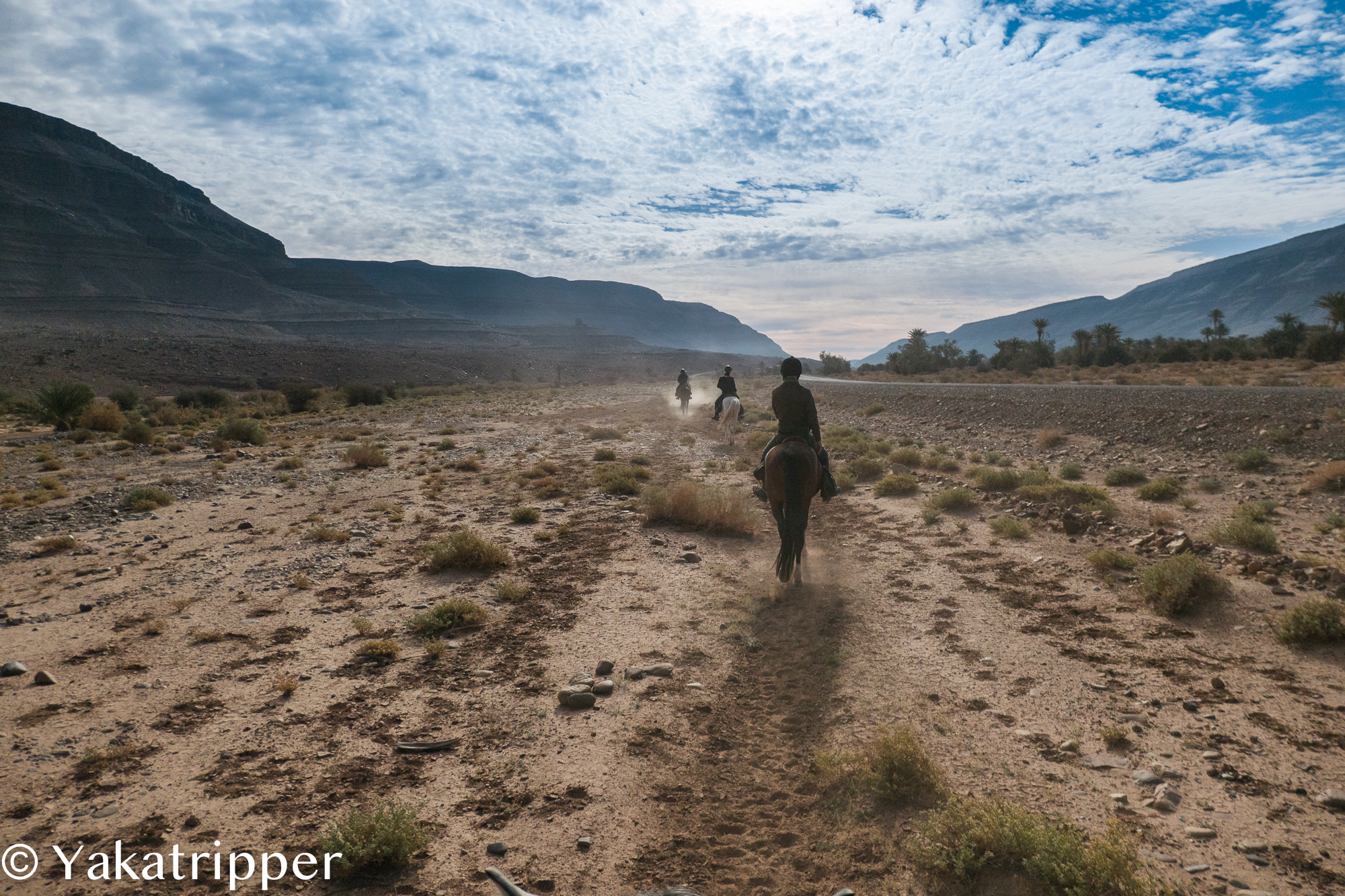 La nuit fut paisible et réparatrice. Les chevaux ont eu leur ration d’avoine matinale et c’est maintenant notre tour. Un copieux petit déjeuner nous est servi sous la grande tente. La toilette de ce matin se limite au brossage des dents puis c’est parti. Nous équipons nos montures et prenons la direction de Tagounite, vers le sud.