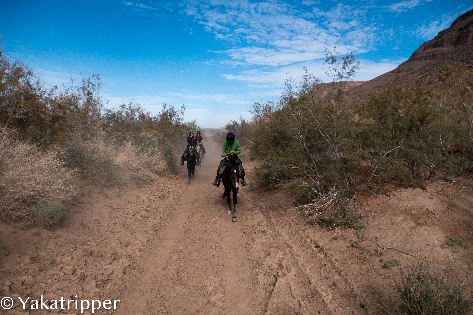 Le déjeuner terminé, nous prenons un peu d’altitude et grimpons sur les hauteurs. La vue est tout simplement magnifique, le canyon d’un côté et un immense désert de l’autre.