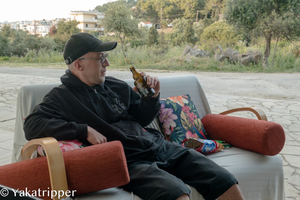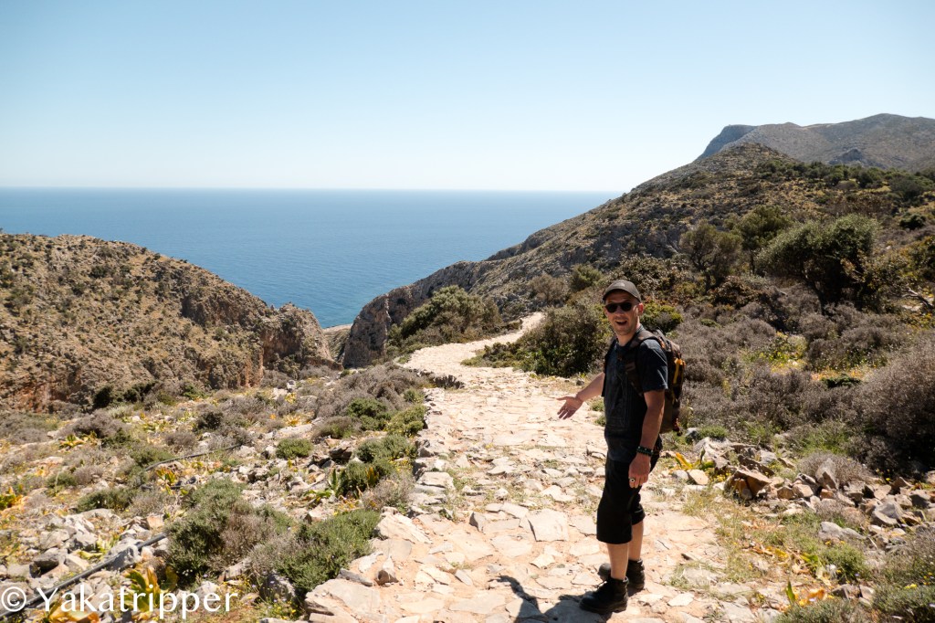 Le réveil du jour suivant se fait plus en douceur. Nous sommes tous les deux en forme et partons pour une petite randonnée un peu plus au nord. C’est Manos, notre hôte, qui nous l’a conseillé ce matin. Il nous a en effet rendu visite à l’heure du petit dej. et nous a tuyauté sur les lieux sympas où randonner.