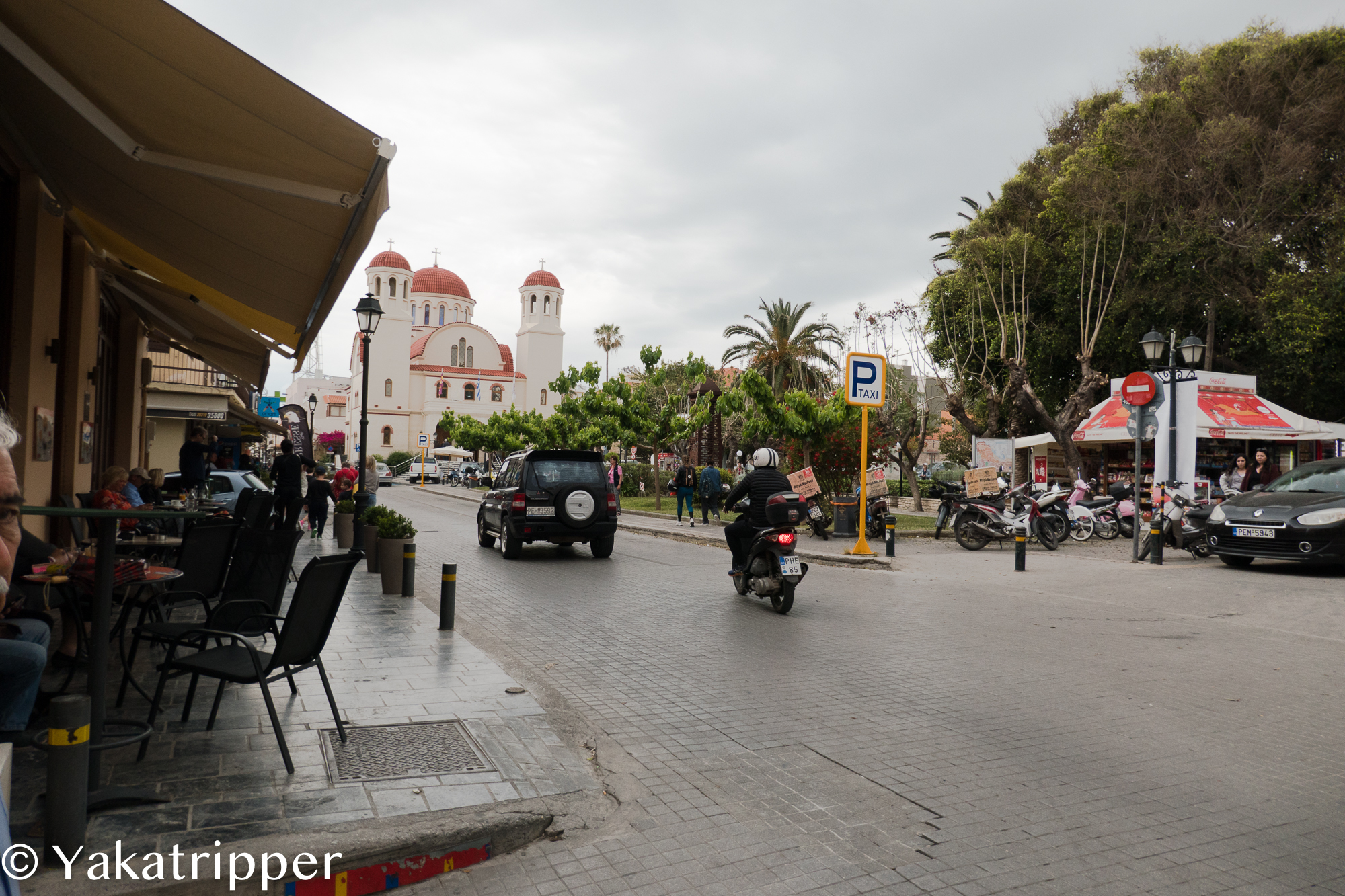 Après nous être repus d’une bonne salade crétoise dans un petit resto, nous reprenons nos déambulations et visitons quelques églises, faisons le tour de la mosquée et flânons dans la ville.