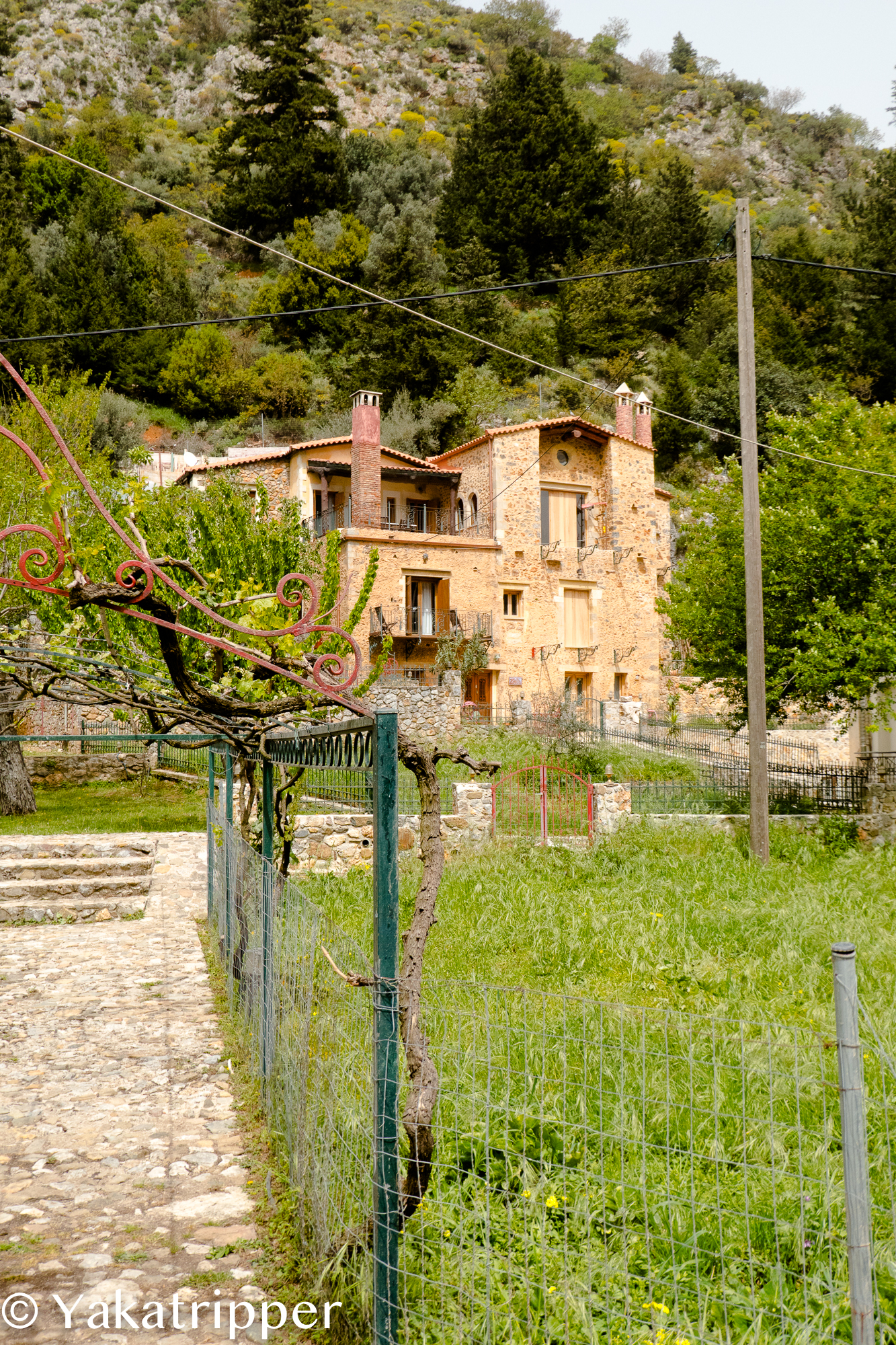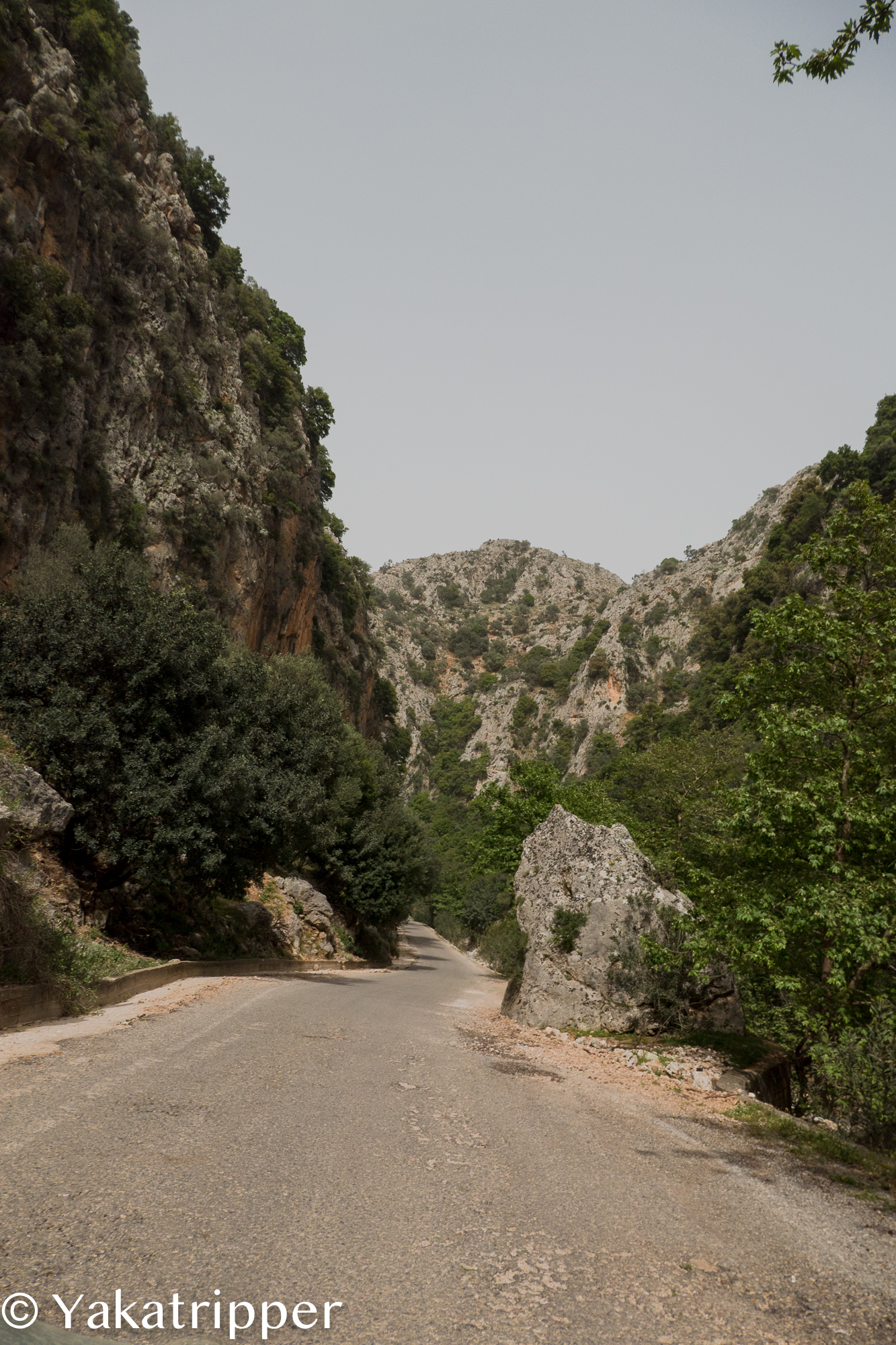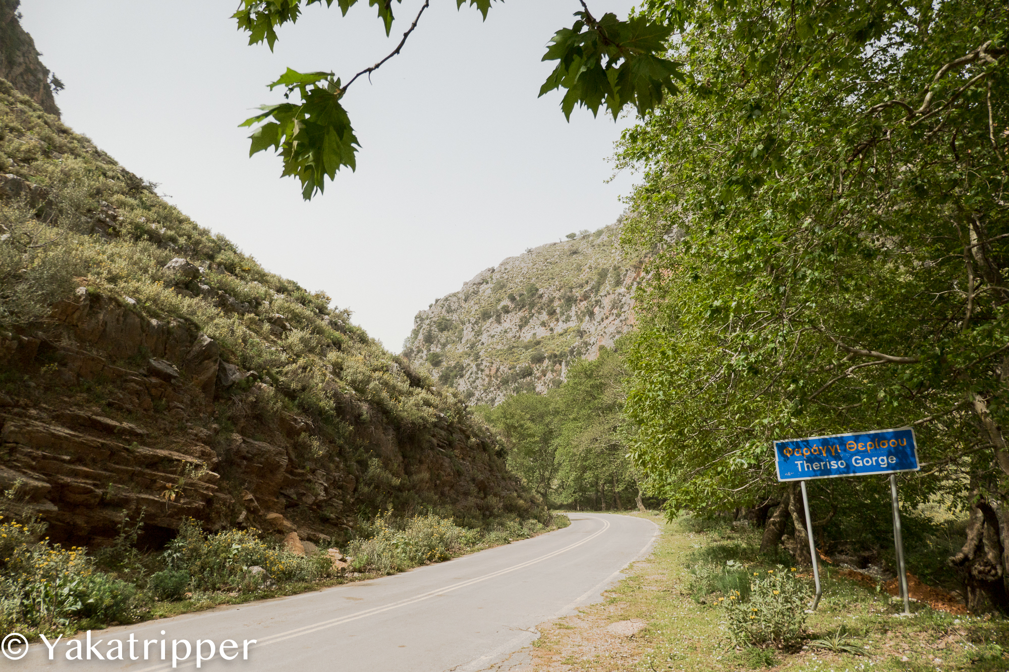 Le jour suivant, aucun signe de pluie mais c’est Eole qui a pris le pouvoir. Après quelques cafés sur les terrasses venteuses du port de Chania, nous prenons la route en direction de Therisso, un petit village perché dans la montagne au commencement d’une gorge du même nom et recommandé par Manos. La route sinueuse s’enfonce littéralement dans les montagnes avec parfois une paroi rocheuse qui se dresse de chaque côté.