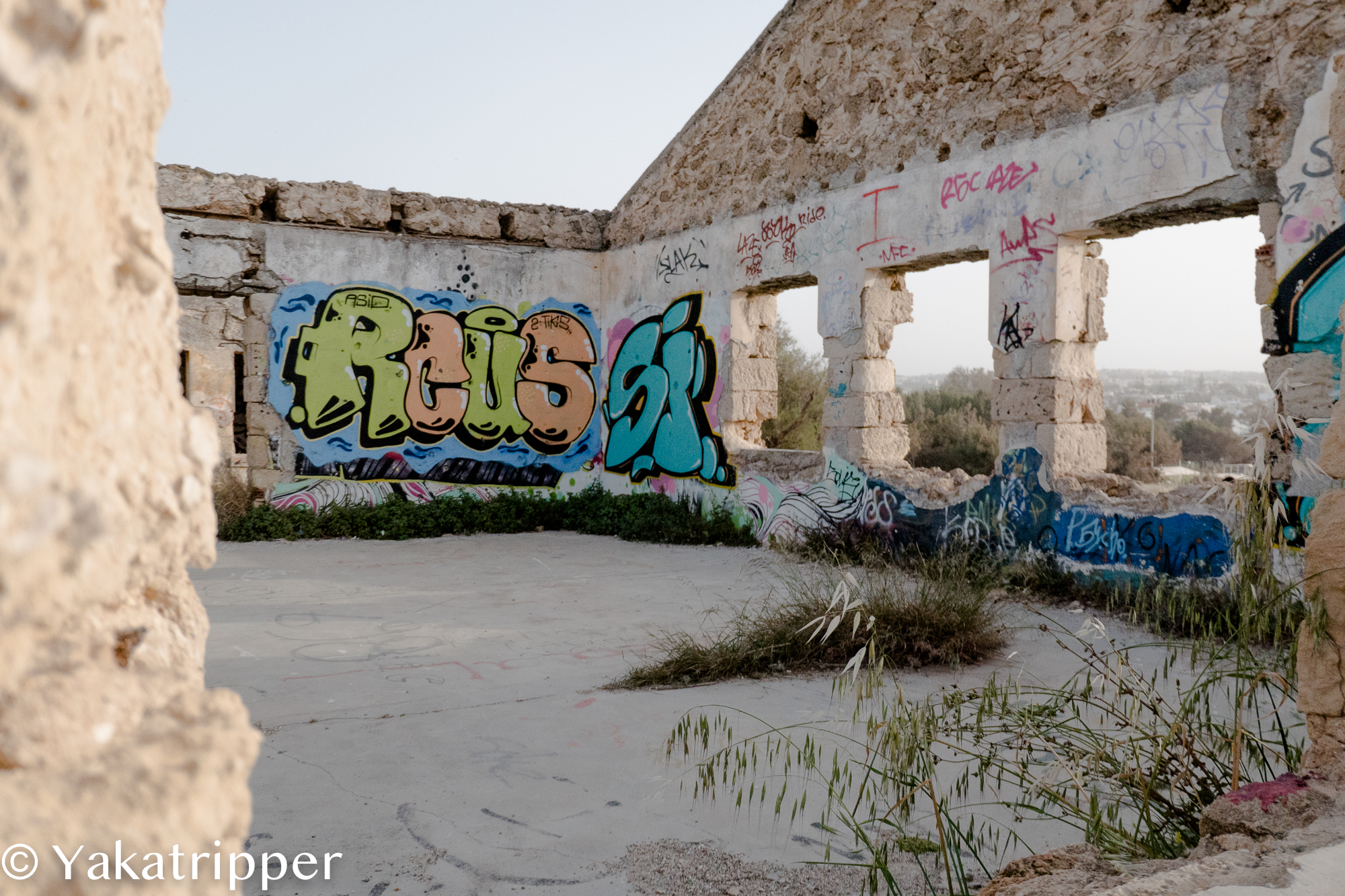 C’est en trainant sur les hauteurs de ce petit bout de côte que nous trouvons quelques restes de vieux bâtiments à l’abandon ayant servis de toiles aux graveurs du coin.