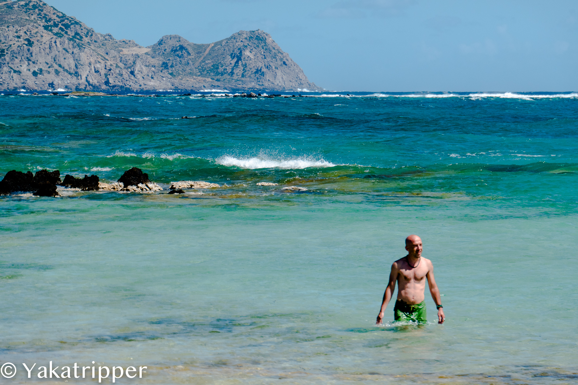 La plage de Elafinisi est très connue pour sa couleur rose. Le sable mélangé à la roche rouge qu’on a pu voir dans les montagnes lui donne par endroits sa couleur si particulière.