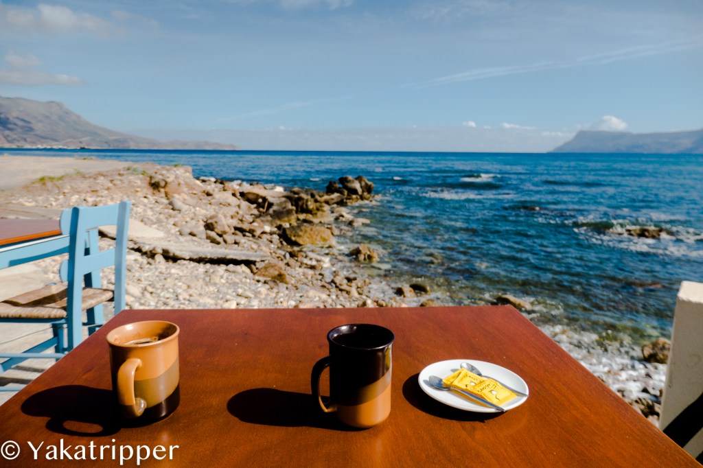 Le réveil est aujourd’hui plus matinal et nous avons mis le réveil afin d’être sur d’émerger suffisamment tôt. Il est 8h et je démarre la voiture. Nous commençons à bien connaitre la région et décidons de ne pas suivre les conseils de notre application GPS qui nous fait toujours passer par les rues les plus tordues de la ville. Je rejoignons donc directement « l’autoroute » en direction de l’ouest, vers Kissamos.