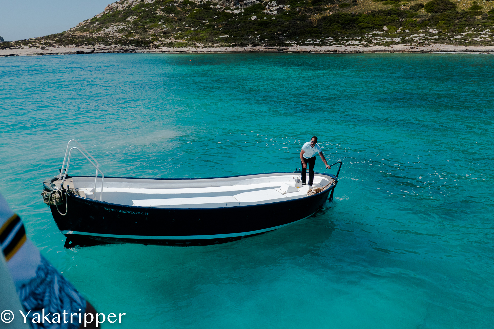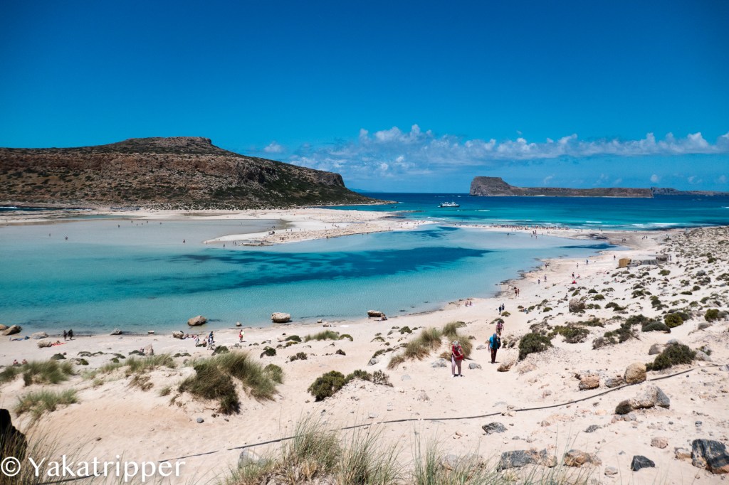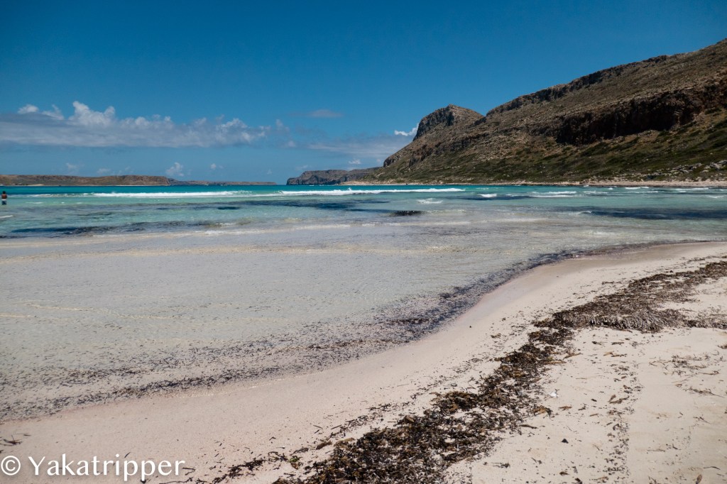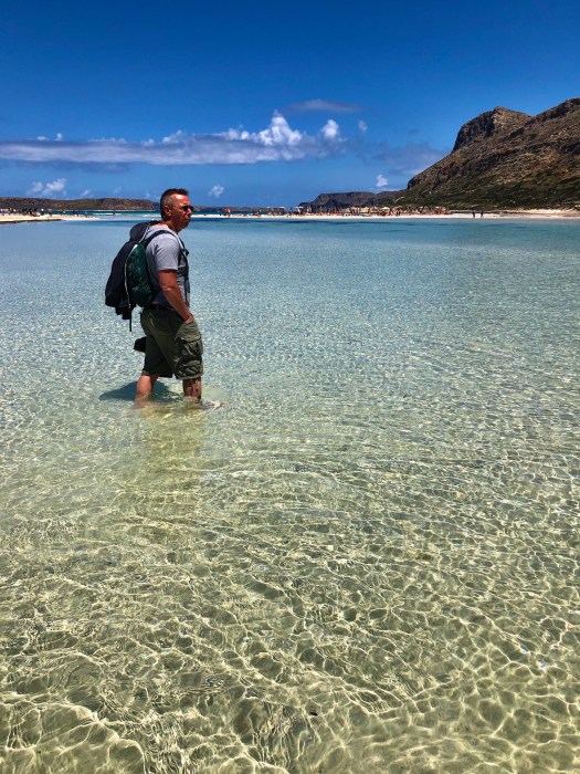 Nous devions nous faire déposer sur l’ile de Gramvoussa puis sur la plage de Balos mais la voix du micro nous annonce que le programme est inversé. C’est donc à Balos que nous passons nos premières heures à terre. Le lagon n’est pas suffisamment profond pour permettre au bateau d’approcher et nous nous faisons donc débarquer dans une barquasse. Le capitaine fera 4 ou 5 aller retour pour déposer la totalité des passagers.