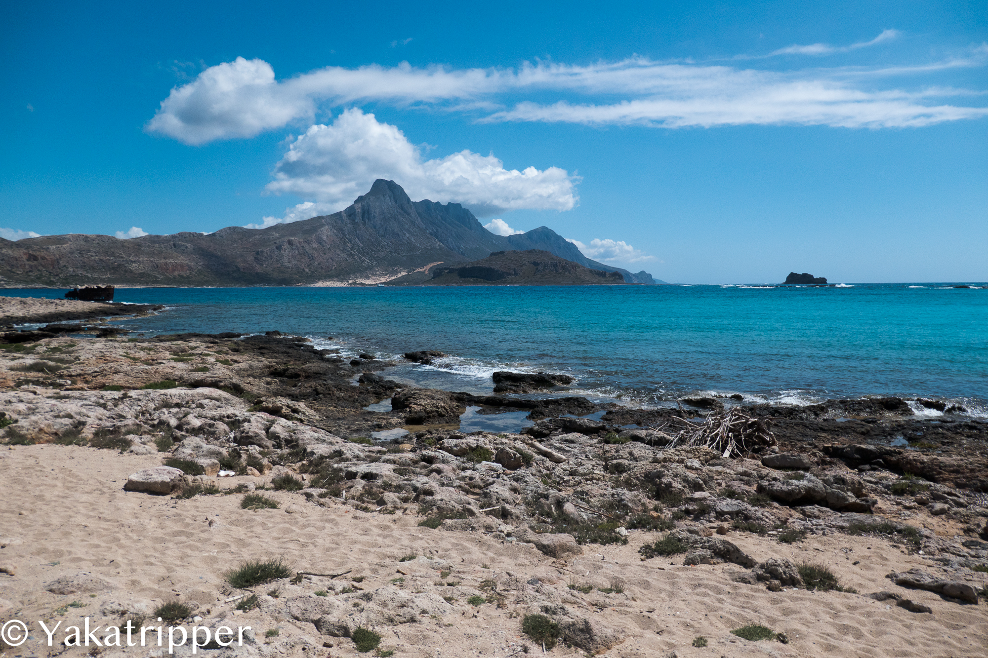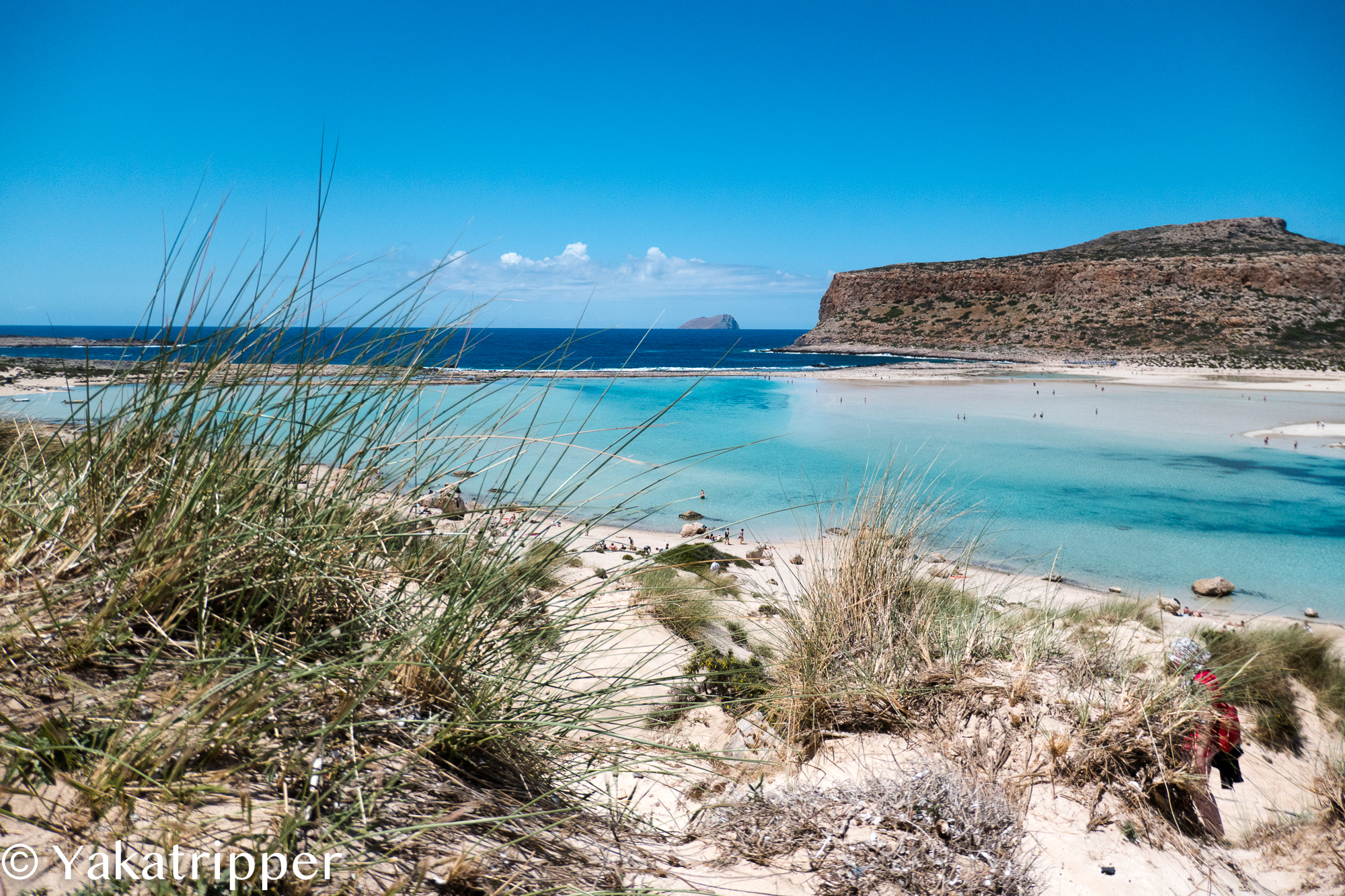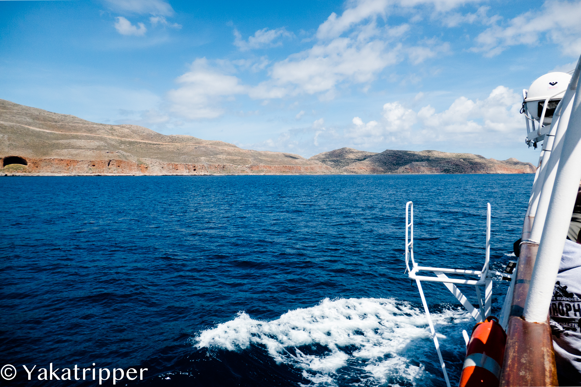 Nous devions nous faire déposer sur l’ile de Gramvoussa puis sur la plage de Balos mais la voix du micro nous annonce que le programme est inversé. C’est donc à Balos que nous passons nos premières heures à terre. Le lagon n’est pas suffisamment profond pour permettre au bateau d’approcher et nous nous faisons donc débarquer dans une barquasse. Le capitaine fera 4 ou 5 aller retour pour déposer la totalité des passagers.