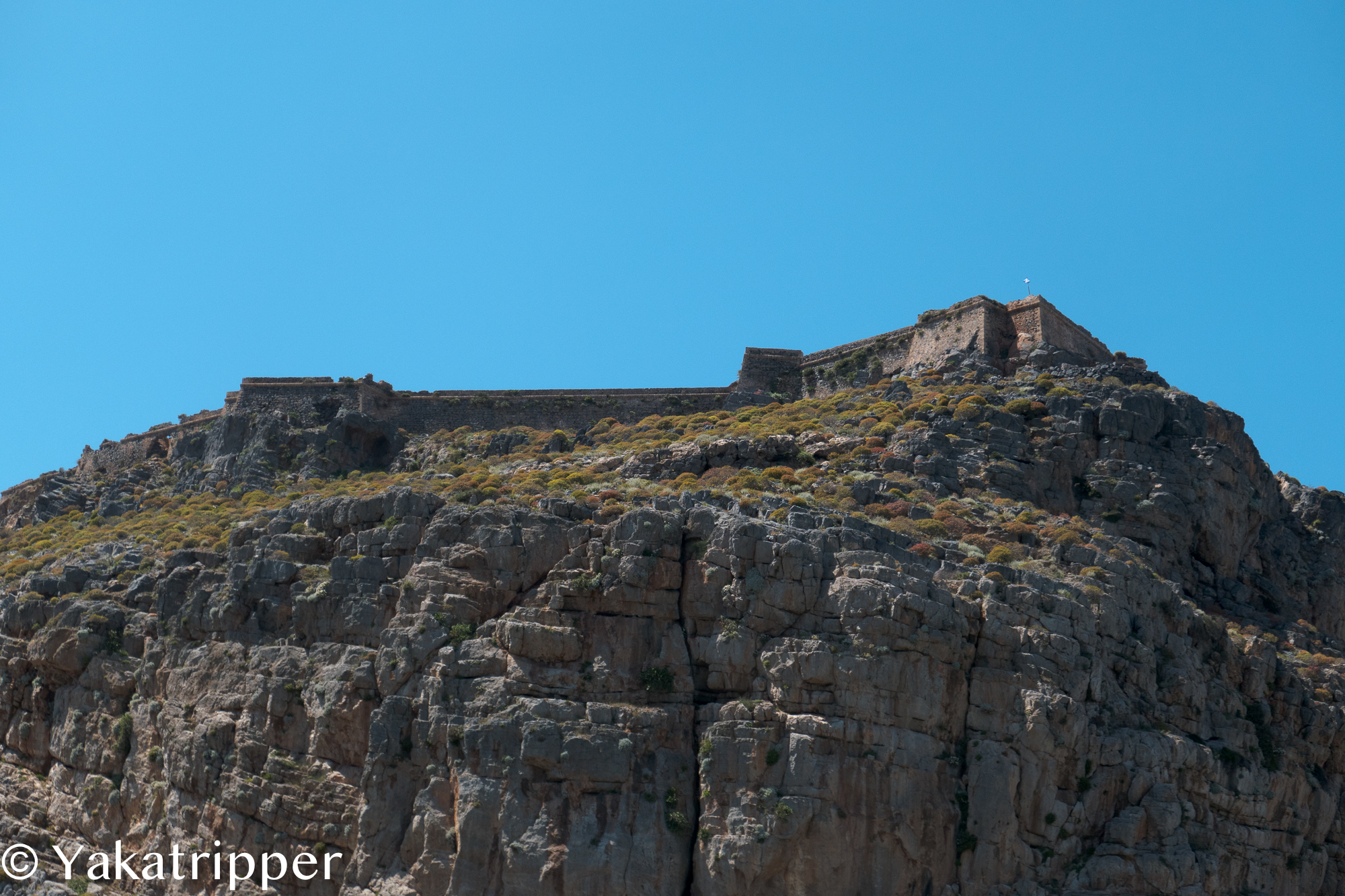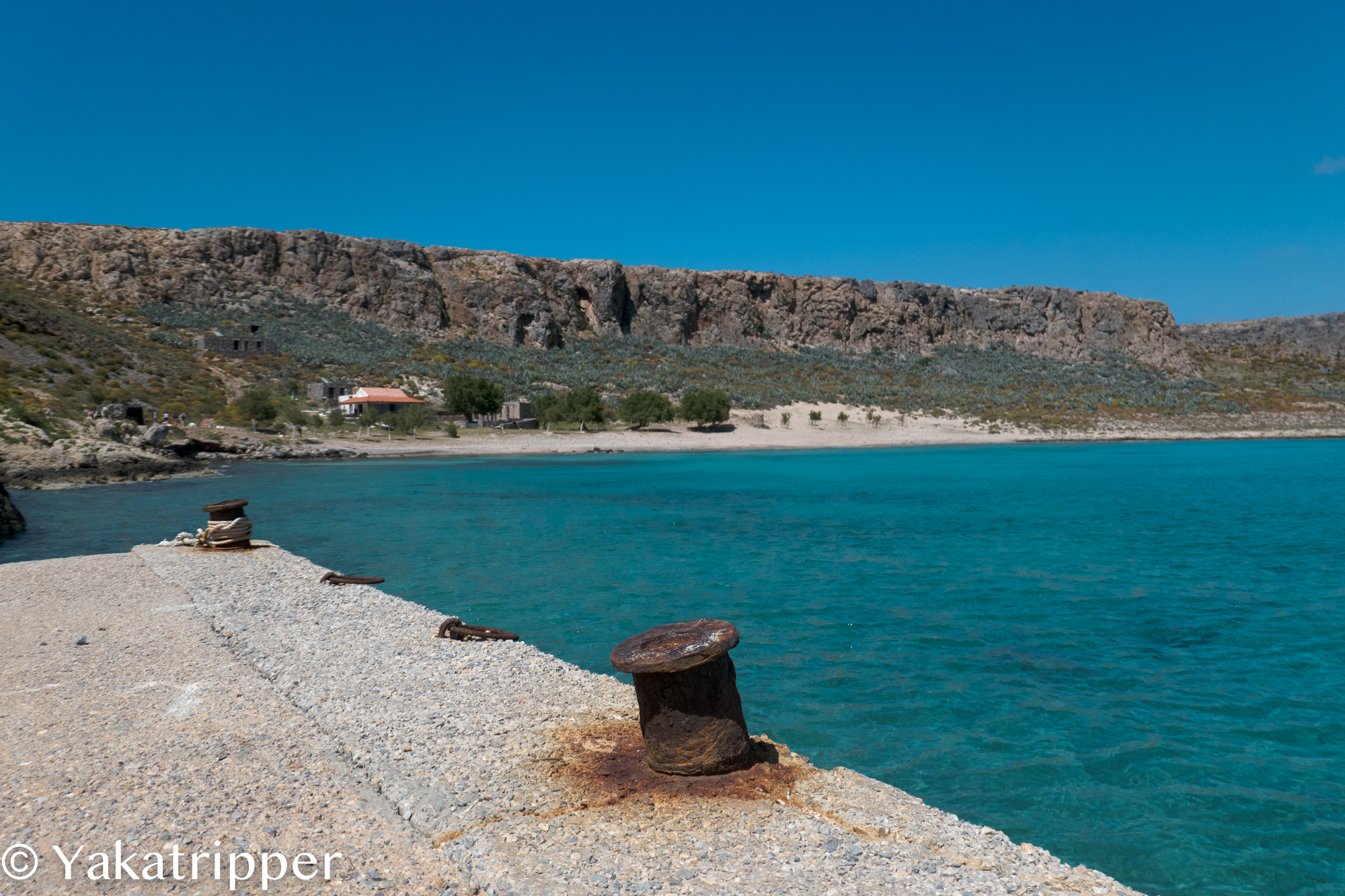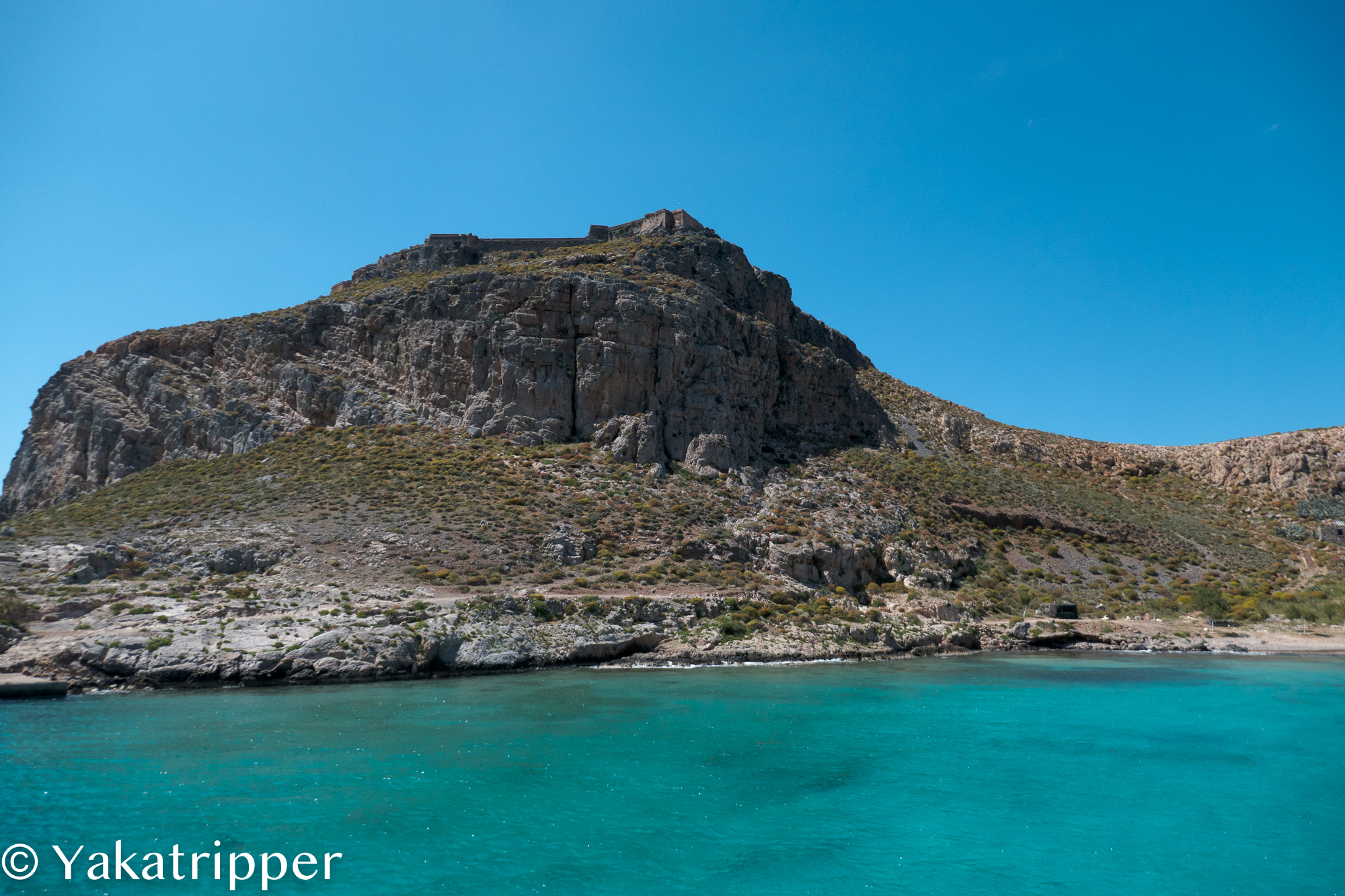 Nous débarquons sur le quai de l’ile de Gramvoussa et la horde de passagers se précipite en direction du fort, perché sur les hauteurs. Cela nous va bien car nous avons décidé de nous la jouer tranquille.