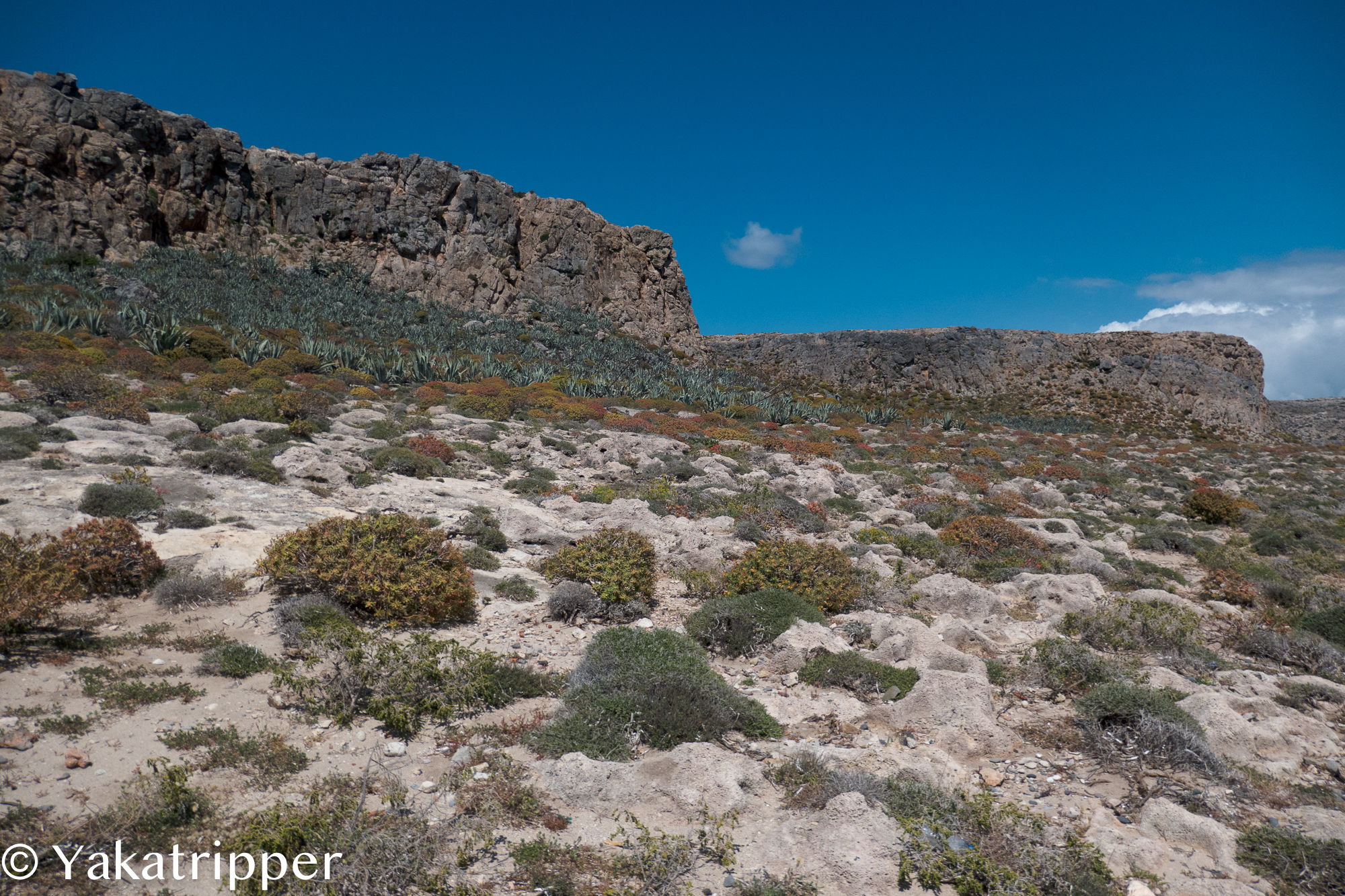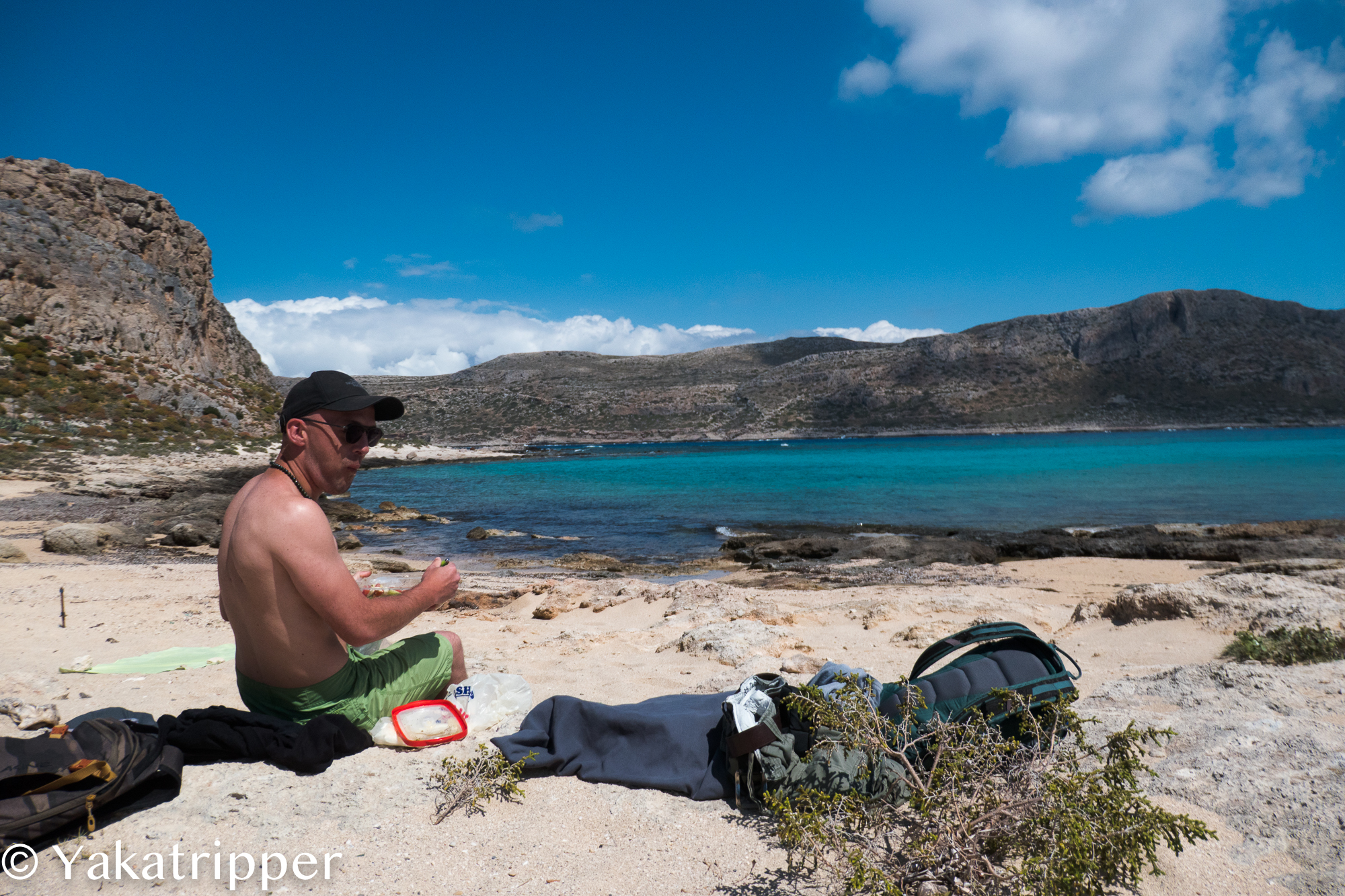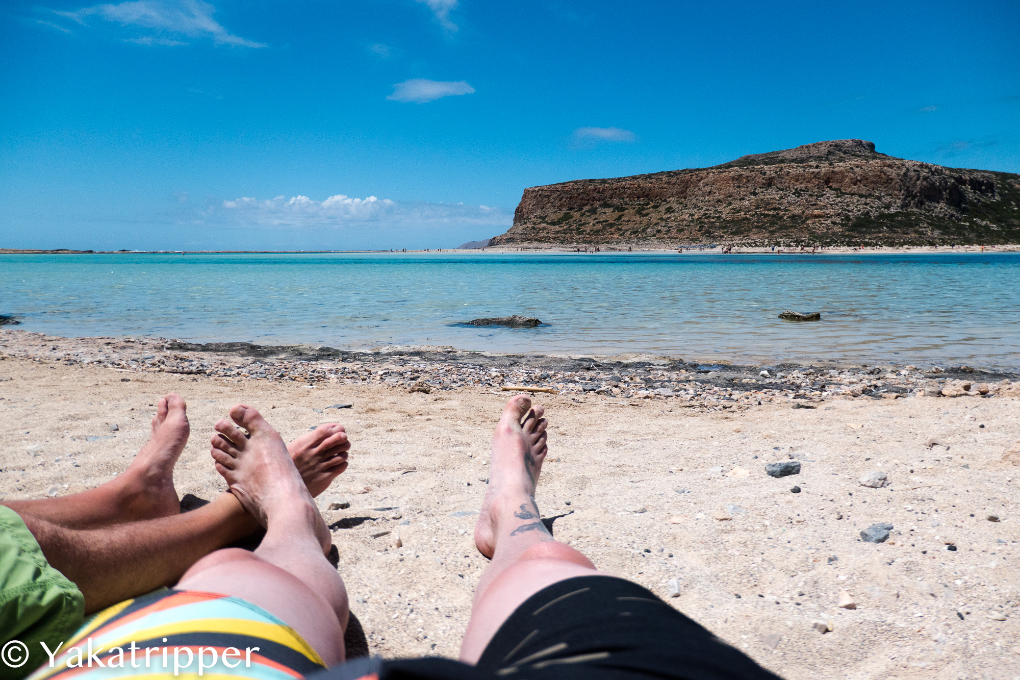 Nous débarquons sur le quai de l’ile de Gramvoussa et la horde de passagers se précipite en direction du fort, perché sur les hauteurs. Cela nous va bien car nous avons décidé de nous la jouer tranquille.