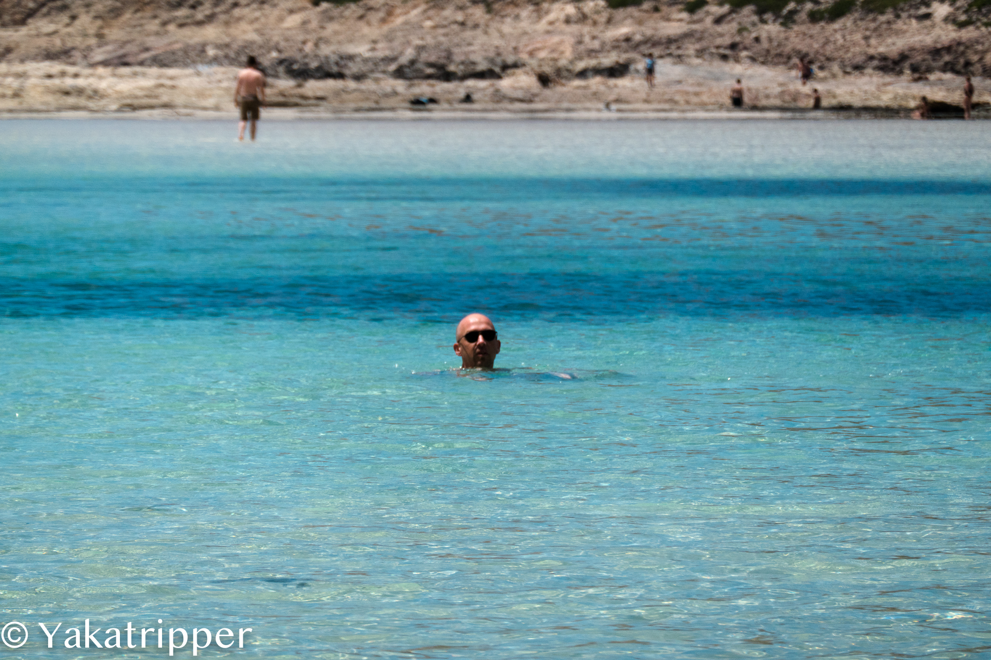 Nous trouvons finalement une petite place sympathique et nous étalons sur la sable. La profondeur du lagon ne passe pas le mètre mais cela ne nous empêche pas de piquer une tête. La température de l’eau n’est pas du tout à l’image du paysage et il me faudra quelques bonnes minutes pour y faire entrer tout mon corps mais quel bonheur de se baigner dans ce décor de carte postale.