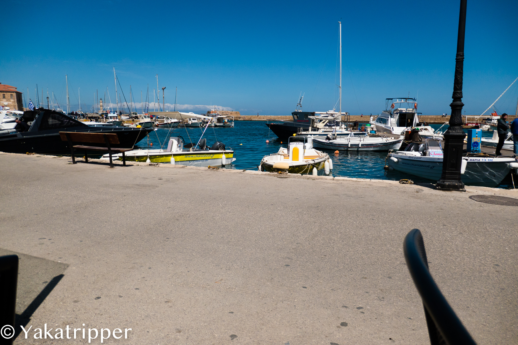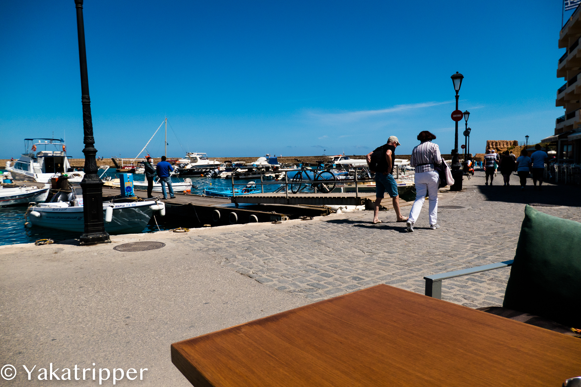 Le réveil se fait ce matin plus en douceur. Pas de réveil qui sonne. Nous allons flâner comme des vacanciers qui n’ont absolument rien à faire, ou presque. Nous descendons dans le centre de Chania et nous posons en terrasse avec un café. L’ambiance matinale est vraiment celle que je préfère. Seuls les locaux, pêcheurs et « voileux », et quelques badauds arpentent les allées du port, tout est tranquille. Les cafetiers lavent leur terrasse, les capitaines leur navire.