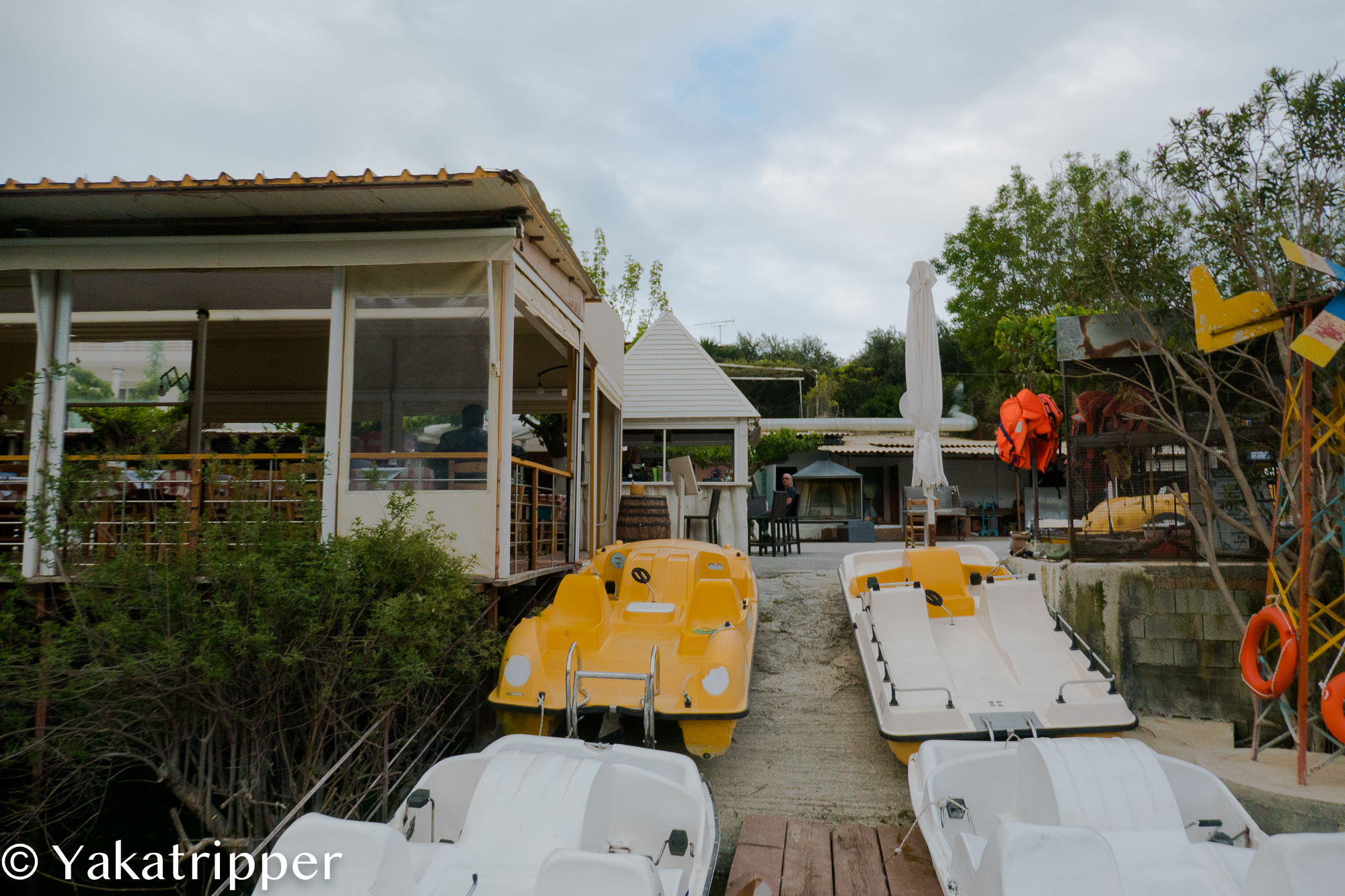 Arrivés à destination après une heure de route, nous commençons par aller sur le port retirer les billets de bateau que nous avons réservé il y a 2 jours. Nous avons une bonne heure de libre avant d’embarquer et l’option « café/terrasse » s’avère être la seule envisageable après ce réveil aux aurores (aurores de vacances = 7h). Nous trouvons un bel endroit où personne n’a encore pris place. Il faut dire que l’établissement semble n’avoir pas encore ouvert mais nous sommes accueillis avec un grand sourire. Le serveur nous sert nos consommations alors que la femme de ménage est encore à l’oeuvre.